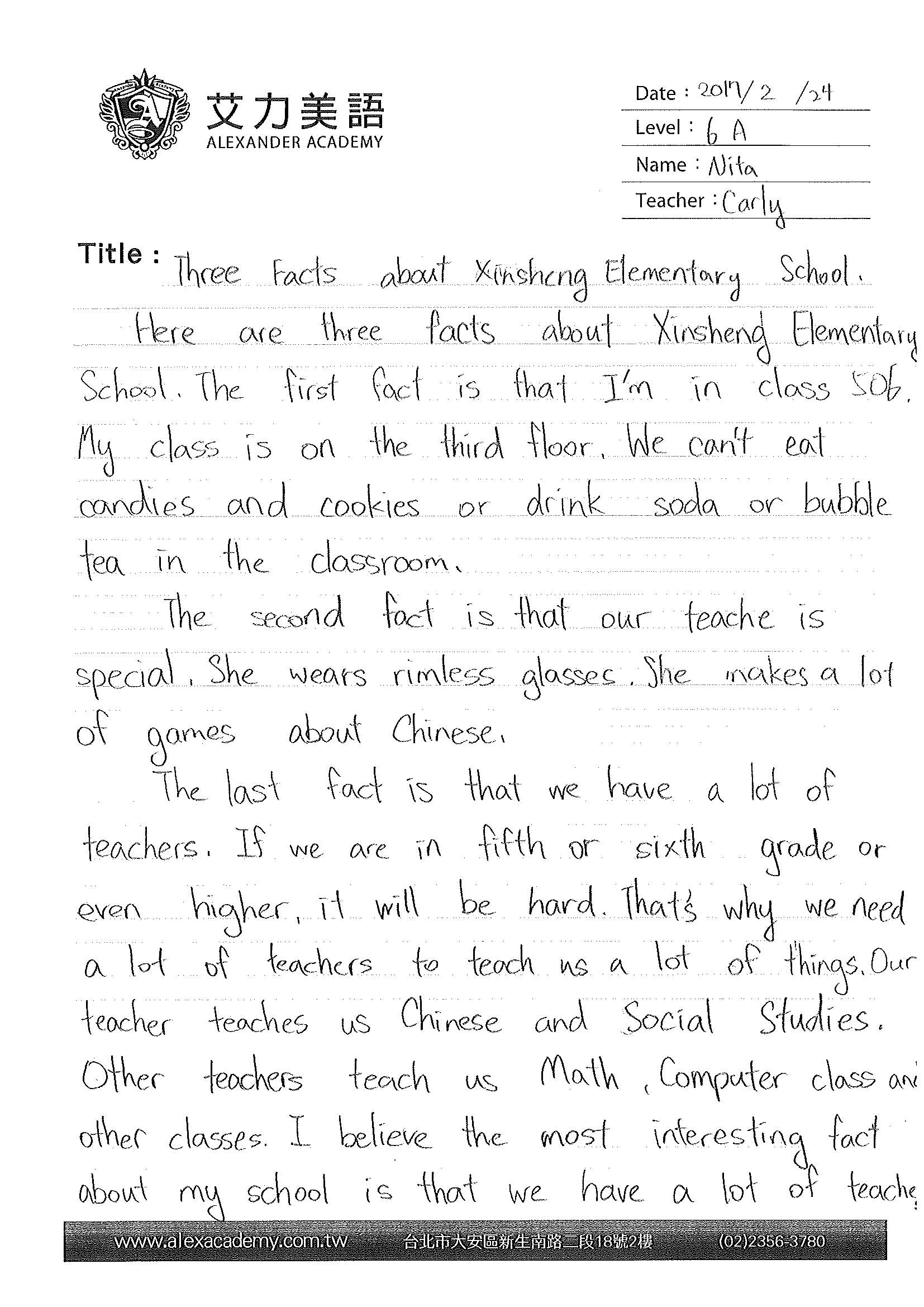 As this month marked the beginning of the second semester, I’m pleased to announce that Level 6 is working right along schedule and everyone is moving along at the same pace. There are no concerns to be had as everyone has shown improvement in their own individual way. Thank you parents for your dedication.